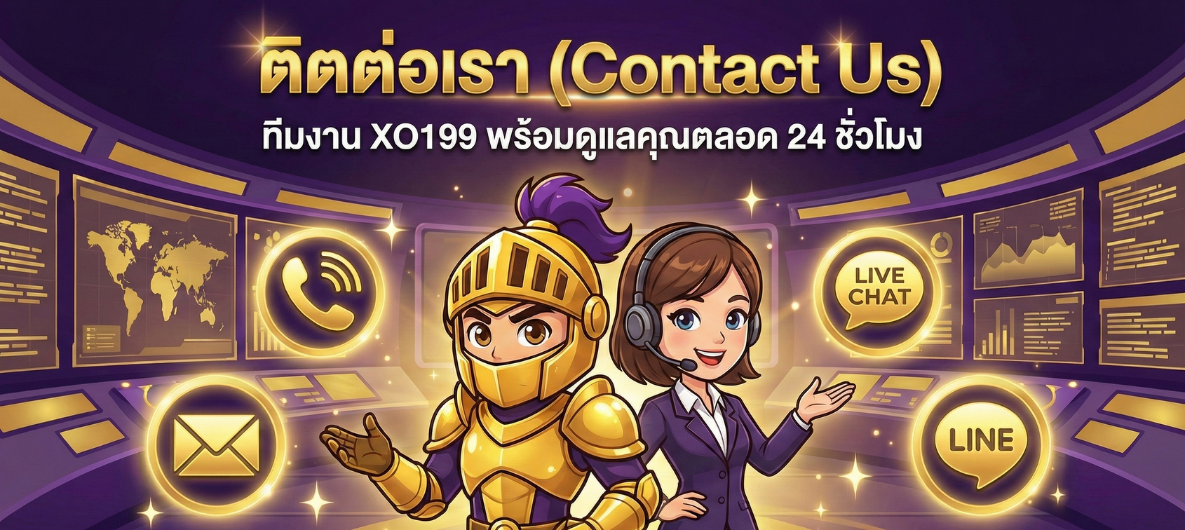 ทีมงานมืออาชีพของเราพร้อมดูแลและให้บริการท่านตลอด 24 ชั่วโมง สามารถติดต่อเราได้ง่ายๆ ผ่านช่องทางแชท (Chat) ทั้ง Line และ Telegram เพียงคลิกที่ปุ่ม “ติดต่อเรา” ด้านล่างนี้ เพื่อรับบริการสุดประทับใจจาก XO199 ได้เลยครับ